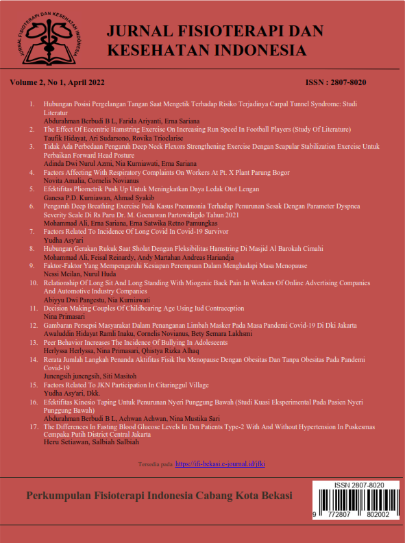 Vol 2 No 1 (2022)Vol 2 No 1 (2022): Jurnal Fisioterapi dan Kesehatan Indonesia